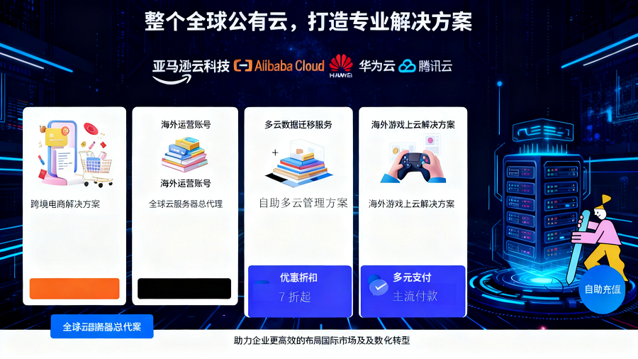 优质的云厂商资源顶尖云服务厂商官方认证代理商,包括阿里云国际、亚马逊云、华为云国际、腾讯云国际、谷歌云、微软云、甲骨文云,覆盖面广,客户选择多!业内领先的折扣优...